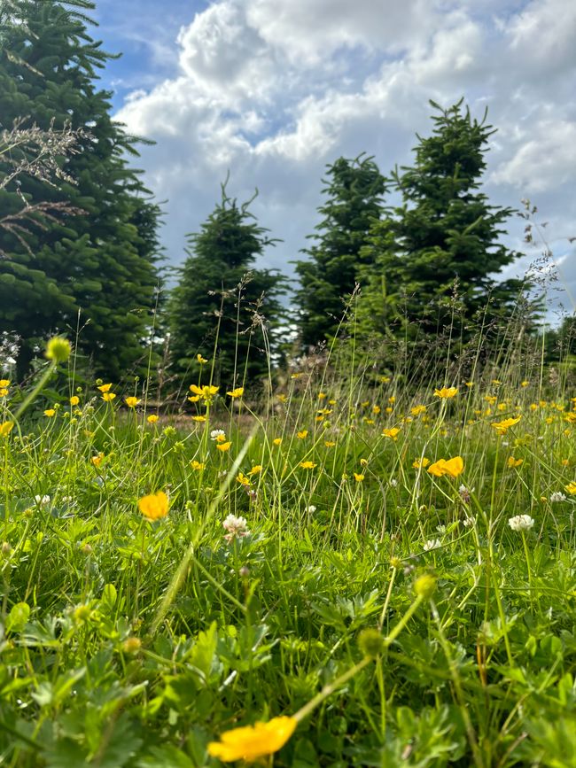 We’ve sown wildflower meadows, planted new hedgerows of blackthorn and hawthorn, and added grassland to support pollinators and shelter wildlife. These areas bring vibrant colour to the plantation while providing food and cover for countless insects and small animals.