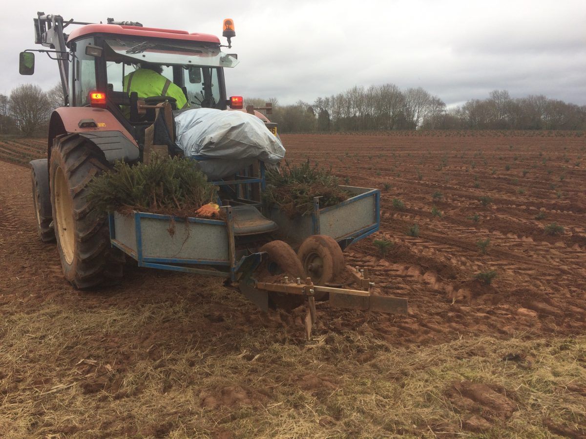 By now 50% will be at the six foot level and ready for harvest. We will repeat all steps in year five then mark all trees we aim to sell this year. The majority of harvesting is now aided by guillotine like machines, saving bad backs from being doubled over all day with a chainsaw!